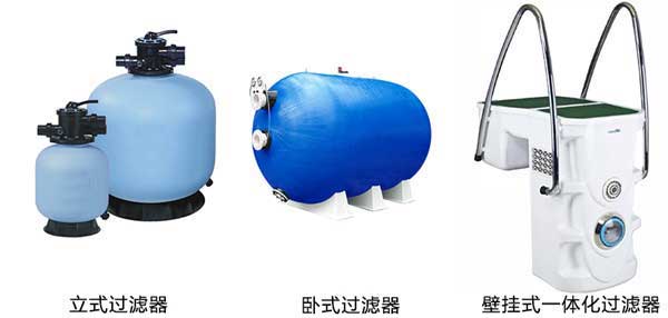 壓力過濾器:將過濾介質裝入一個封閉的耐壓容器內,把待過濾掉池水施以外力,以達到提高池水流過過濾介質的速度,通過過濾介質攔截水中的雜質,使其濾后出水達到標準的過濾設備。