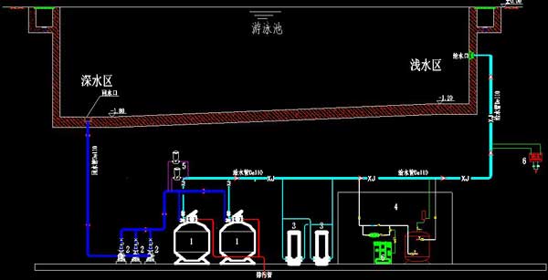 游泳池水循環方式就是游泳池進水與游泳池回水在池內不斷流動的方式。通俗地講就是要解決好從游泳池的什么位置或部位取水(即回水)及將凈化處理過得水從游泳池的什么位置的部位再送入游泳池內,達到既能有效地清除漂浮在游泳池水表面較臟的表面水,又能最大程度減少池底沉積污染的存在,這就是選擇游泳池池水循環方式的主要原則。具體設計時還應關注游泳池給水口、回水口、溢水槽、泄水口、循環水泵自灌吸水、管道安裝和維修及環境衛生的保持等細部如何正確處理。