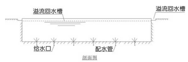 2.池水表面臟污雜質可通過溢流槽收集后進入水處理系統,可有效凈化池水表面水、懸浮物質。布水口較多,池底沉積物少。