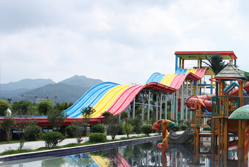 彩虹競賽滑梯同樣是一類非常經典的水上樂園游玩水滑梯,多可以多道并列設計,一般為3~10道,可以用身體或浮墊滑行。參與者可以同時出發進行比賽,滑道中間會設計一系列刺激的小坡,參與者們都將一一通過它們,最終沖向終點線。該設備的參與和互動性非常強,同時具有很強的接待能力,讓游客可以多次參與到比賽當中,獲取歡樂和暢快的獨特體驗。